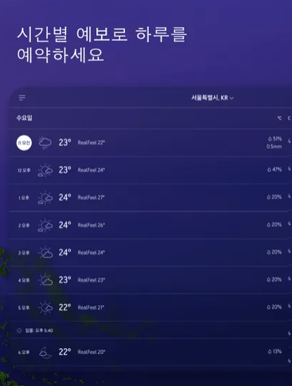 AccuWeather는 단순히 기온과 강수량을 알려주는 데 그치지 않고 다양한 기능을 통해 사용자 경험을 극대화합니다.